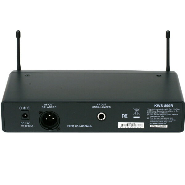 (基本条件遵守の最適条件下において) ・KWS-899R 受信機 ・電源アダプター ・1/4インチフォンケーブル(1.5m) ・ラックマウントイヤー ・日本語取扱説明書/製品保証書 ・KWS-899Pベルトパック送信機 ・mini-XLRコネクター搭載LM-60ラベリアマイク(ピンマイク) ・タイクリップ(ピンマイク装着用クリップ 付属品:正規保証書 お問い合わせフリーダイヤル:0120-37-9630